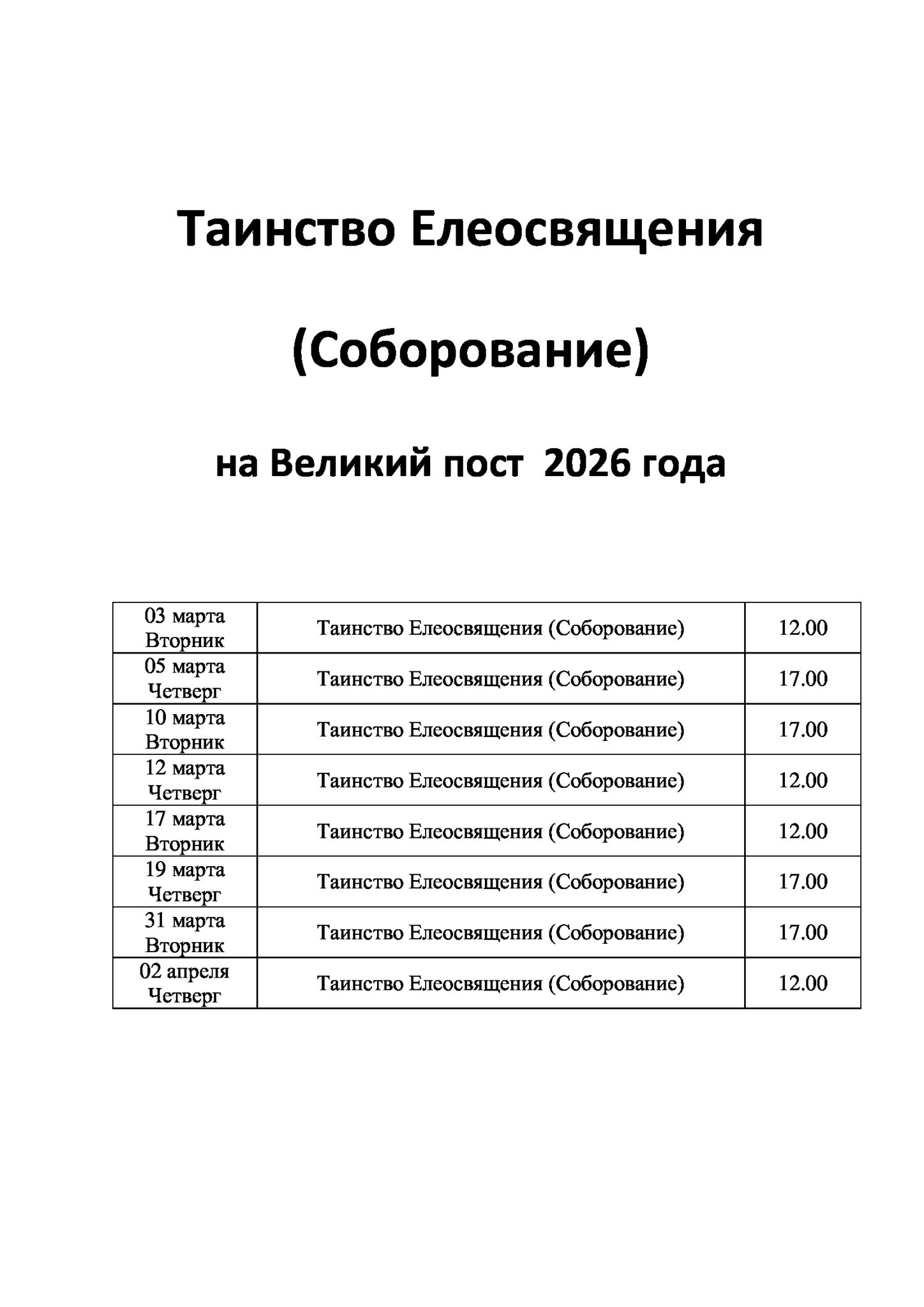 проводится в дни совершения Божественной Литургии